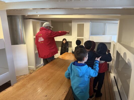 Die Führung war spannend und kindgerecht gestaltet. Wir durften viele Bereiche des Schiffs erkunden – von der Offizierskabine über den Lagerraum bis hin zum Kartenhaus, dem Versammlungsraum und den Schlafplätzen der Besatzung. Die Mitarbeitenden erklärten uns alles so anschaulich, dass wir uns richtig vorstellen konnten, wie das Leben an Bord damals gewesen sein muss.